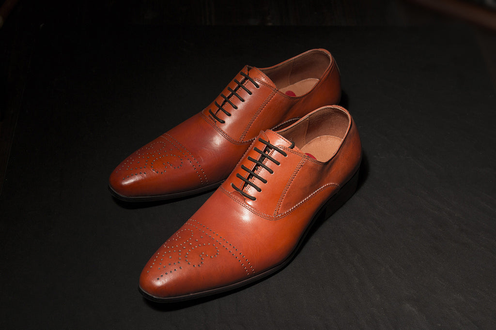 These lively orange leather shoes will grab enough attention on their own.